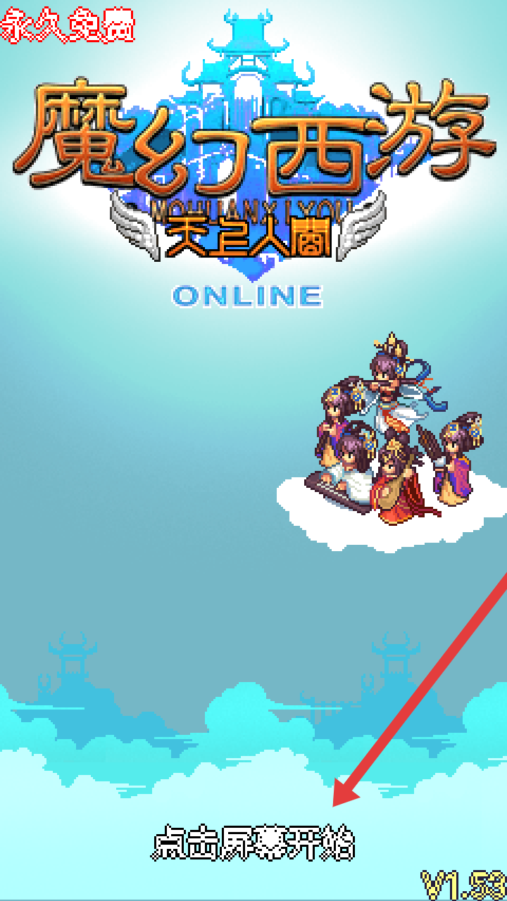 1、進(jìn)入魔幻西游的游戲啟動主界面,操控者需要點(diǎn)擊屏幕任意位置,進(jìn)入功能選擇頁面。