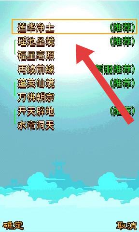 3、進(jìn)入服務(wù)器選擇界面,選擇箭頭標(biāo)注的【蓮華凈土(推薦)】服務(wù)器,點(diǎn)擊確定進(jìn)入游戲。