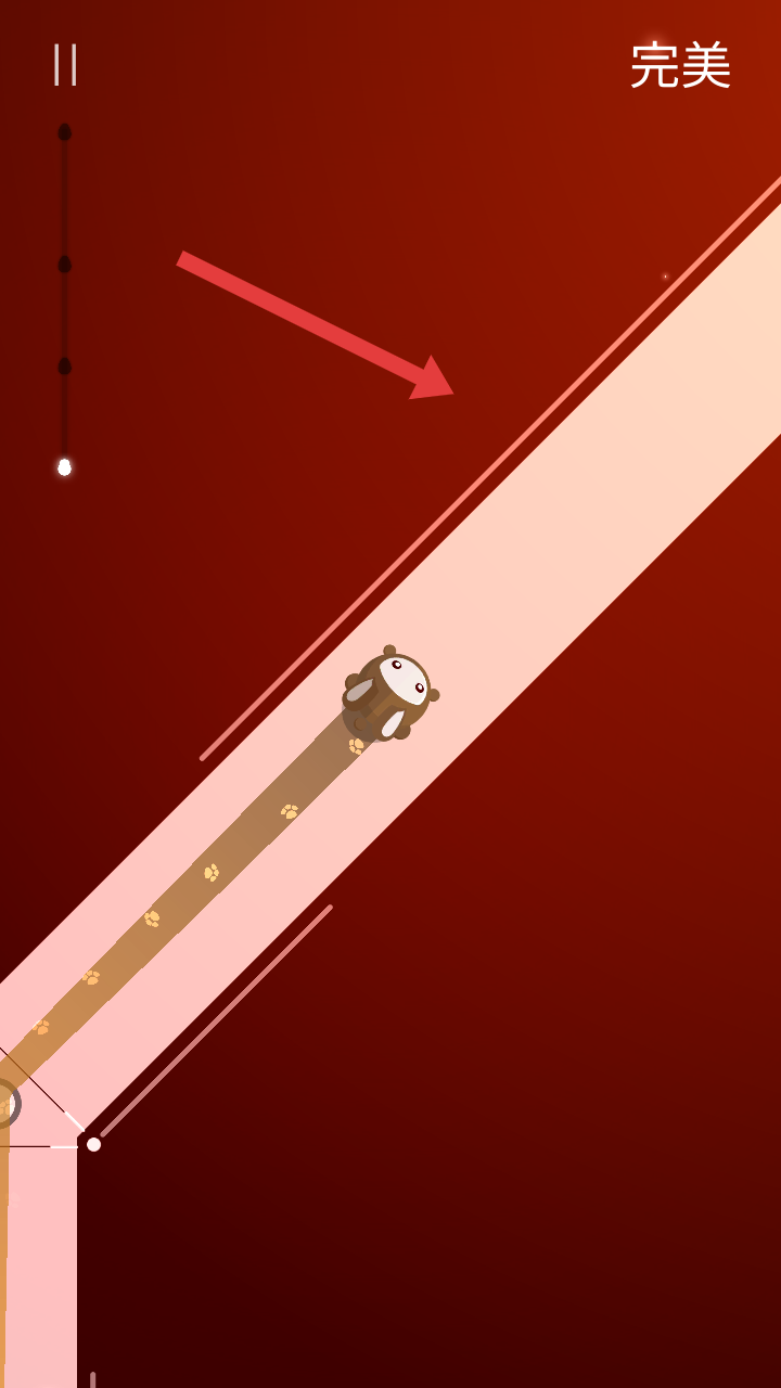 2、游戲內(nèi)操控角色沿軌道移動,跟隨節(jié)奏點(diǎn)擊屏幕,追求右上角【完美】評價,避開紅色箭頭警示的危險區(qū)域。