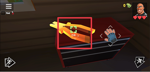 3、電箱打開后,我們需要用到鉗子把電線剪開,同樣根據(jù)黃色箭頭指引來到小房間內(nèi),然后點擊手將鉗子撿起來。