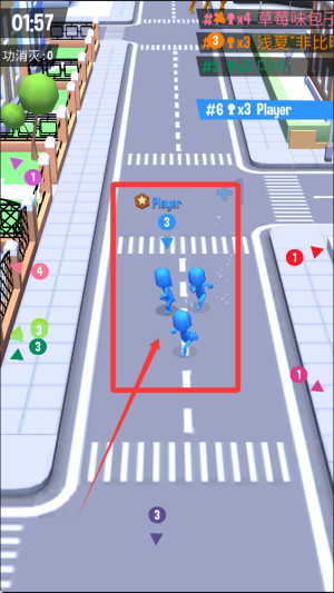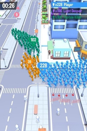 1、基礎(chǔ)玩法是通過滑動屏幕控制自己的隊伍移動,沿途吞噬行人和其他小隊伍來逐步壯大自己的勢力范圍。