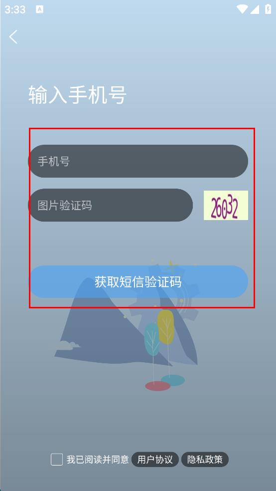 4、在輸入手機號頁面輸入手機號碼和圖片驗證碼,點擊獲取短信驗證碼,后續(xù)完成注冊流程。