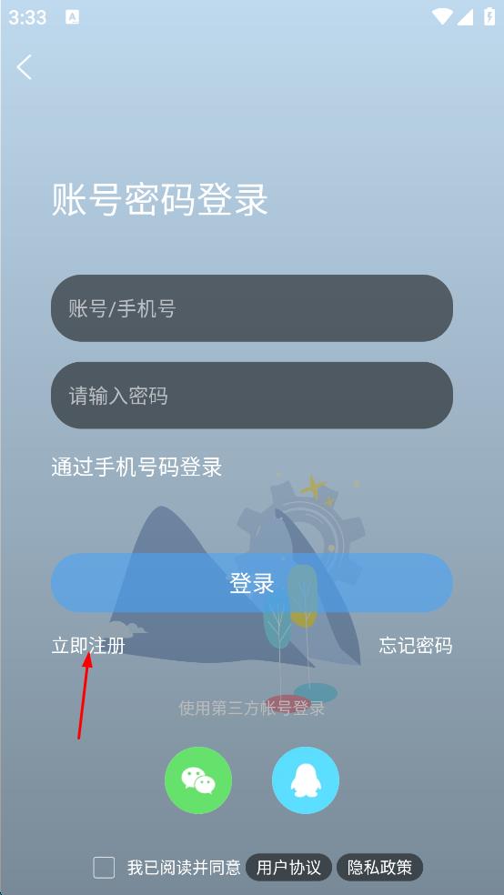 3、在登錄相關頁面點擊立即注冊選項,進入輸入手機號頁面。