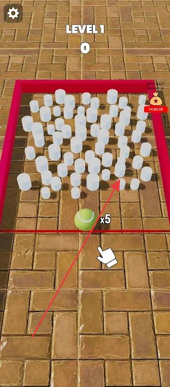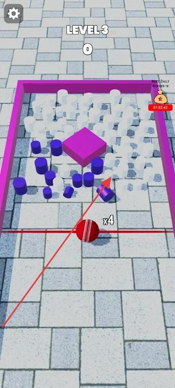 2、松開手指發(fā)射彩球,利用墻壁反彈和場(chǎng)景互動(dòng)元素(如加速器、分裂器)改變彩球軌跡,盡可能多地撞擊彩色目標(biāo)使其爆破。