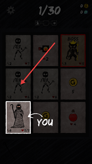 1、在九宮格戰(zhàn)場排列卡牌,觸發(fā)連鎖反應把boss轟成煙花。