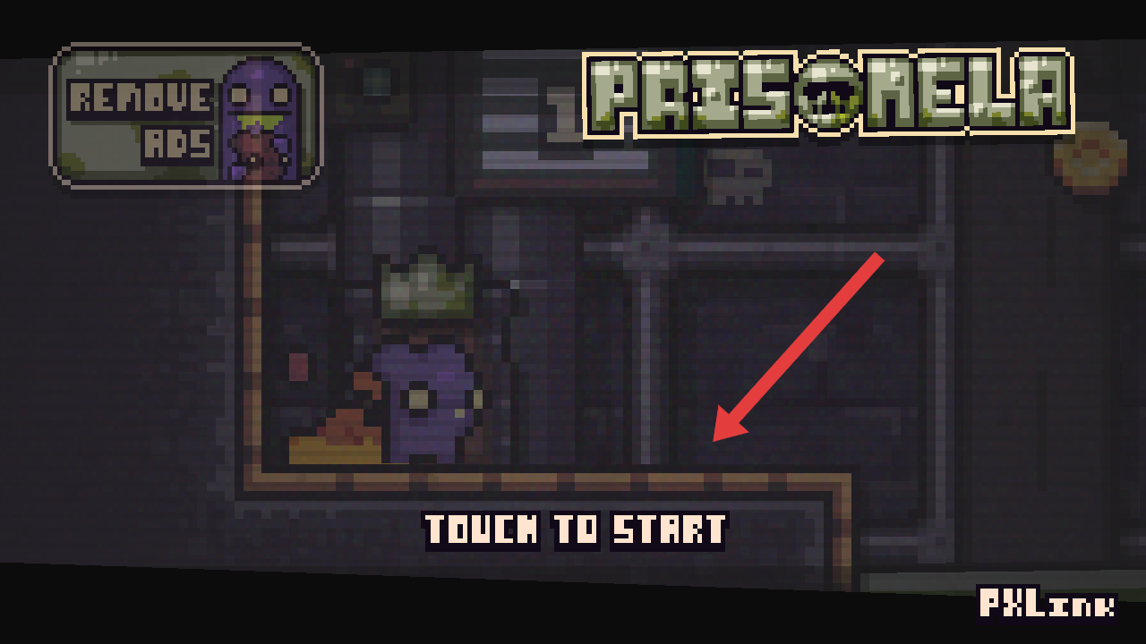 1、進入像素囚徒游戲界面,點擊【TOUCHTOSTART】,開啟像素囚徒的冒險之旅,進入初始關(guān)卡。