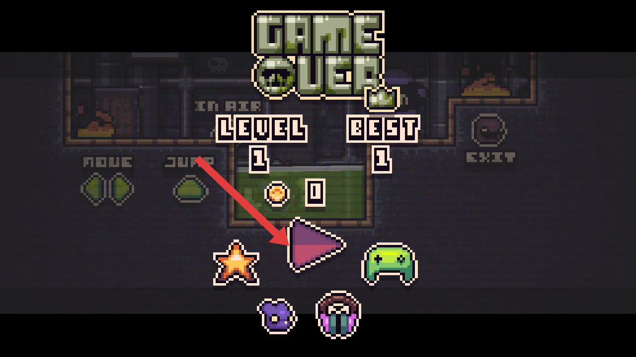 3、當游戲失敗后,點擊界面紫色三角箭頭按鈕,重新挑戰(zhàn)Level1,嘗試突破當前關(guān)卡記錄。