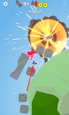 2、讓火箭撞擊行星表面,觸發(fā)爆炸效果,利用沖擊破壞地形、道具,影響場(chǎng)景中小人狀態(tài)。
