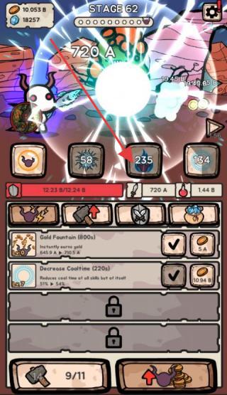 1、戰(zhàn)斗時,優(yōu)先點擊高傷害技能(如數(shù)字235),快速削減敵人血量。