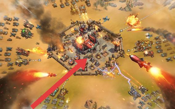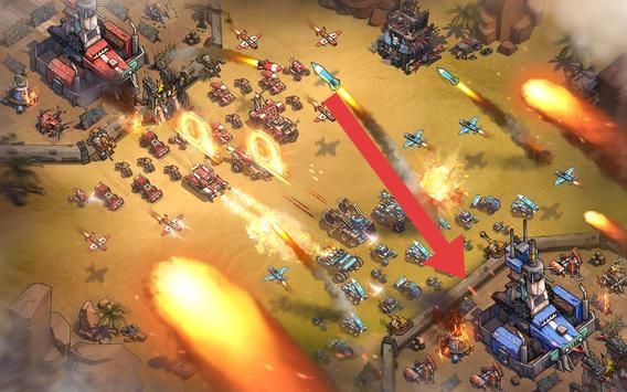 2、戰(zhàn)斗時(shí),聚焦箭頭指向的敵方主建筑,調(diào)配兵種(如戰(zhàn)車、戰(zhàn)機(jī)),發(fā)起集中攻擊,突破防線。