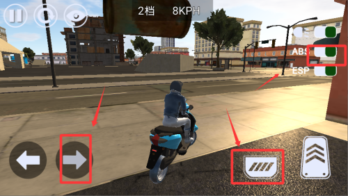 1、核心操作方式,左側(cè)虛擬按鈕控制油門和剎車,右側(cè)重力感應(yīng)調(diào)整車身傾斜。長按漂移鍵配合方向操作可觸發(fā)不同等級的漂移動作。