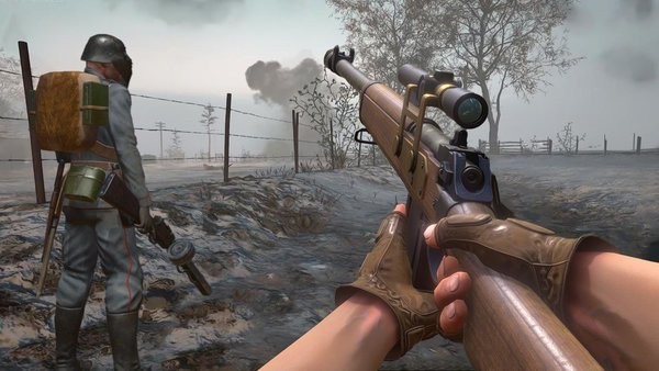 2、多樣武器系統(tǒng):收錄二戰(zhàn)時(shí)期經(jīng)典槍械,包括M1加蘭德、MP40、Kar98k等,每把武器均模擬真實(shí)后坐力與彈道,玩家需適應(yīng)不同槍械特性。