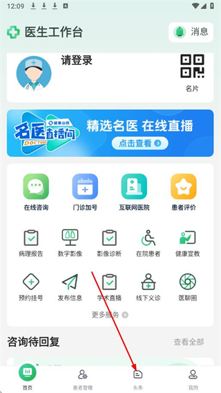 1、打開健康山西醫(yī)生版APP,在首頁點擊底部導(dǎo)航欄中的頭條。