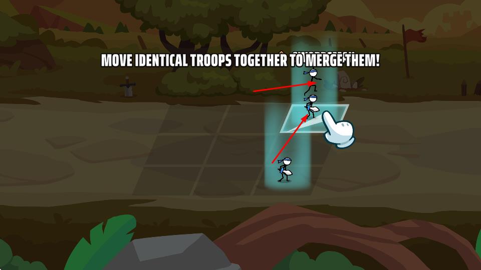 2、戰(zhàn)斗中,拖動相同火柴人(如藍(lán)色)合并,提升部隊(duì)等級,增強(qiáng)戰(zhàn)力,應(yīng)對更強(qiáng)敵人。