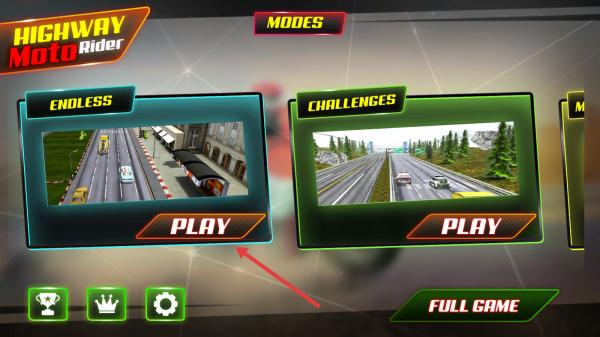 1、在模式選擇界面,選“ENDLESS”模式點(diǎn)【PLAY】,進(jìn)入城市公路,操控摩托前行,先熟悉油門、轉(zhuǎn)向操作,避車輛,適應(yīng)節(jié)奏。