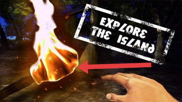 3、文字“EXPLORETHEISLAND”(探索島嶼)體現(xiàn)探索主題,呈現(xiàn)手持火把在島嶼場景探索的玩法,符合求生、探索島嶼的核心內(nèi)容。