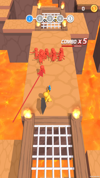 2、長按屏幕操控角色揮舞武器擊退周圍敵人,遇到多人圍攻時(shí)可雙擊屏幕觸發(fā)翻滾躲避,同時(shí)注意觀察場(chǎng)景邊緣的危險(xiǎn)區(qū)域,齒輪等淘汰點(diǎn)可快速得分。