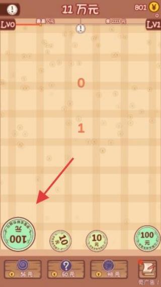 3、積累財富:通過放置、合成,提升總金額(如從1萬到11萬),推進關(guān)卡。