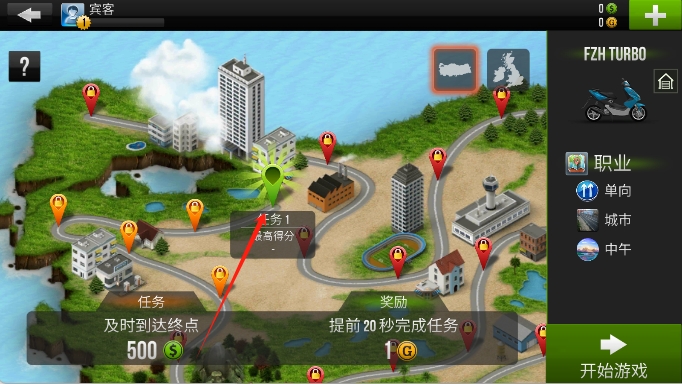 3、賽事應(yīng)對方法:不同賽事模式有不同目標(biāo)要求,需選擇直線加速性能強(qiáng)的摩托車,限時模式需在規(guī)定時間內(nèi)完成任務(wù),需規(guī)劃最優(yōu)路線與駕駛策略。