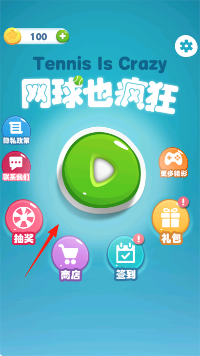 1、模式選擇點(diǎn)擊綠色播放鍵,進(jìn)入游戲,可通過(guò)“抽獎(jiǎng)”“商店”等功能,用金幣(100)解鎖角色、道具。