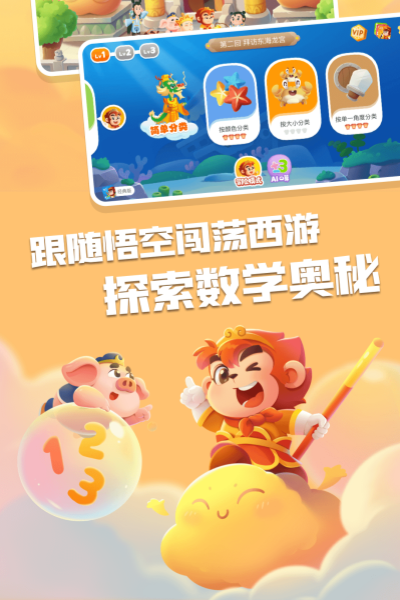 悟空數(shù)學(xué)app是專為三到八歲學(xué)齡前兒童設(shè)計的幼兒數(shù)學(xué)學(xué)習(xí)軟件。以西游記劇情為基礎(chǔ),孫悟空為主角,采用小游戲的設(shè)計,激發(fā)孩子學(xué)習(xí)興趣,爸爸媽媽再也不用擔心孩子不想學(xué)了!涵蓋加法、減法、幾何、進位加、退位減、時間、貨幣、乘法,與幼兒園教學(xué)大綱一致,讓孩子贏在起跑線!
