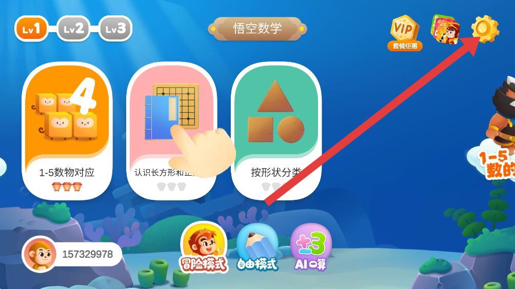 1、打開悟空數(shù)學(xué)APP,點擊界面右上角齒輪狀的設(shè)置圖標。