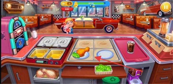 3、廚房操作,拖放食材(如蔬菜、雞肉)到餐盤,快速烹飪,上菜給顧客,完成關卡,提升餐廳評分,解鎖新廚具。