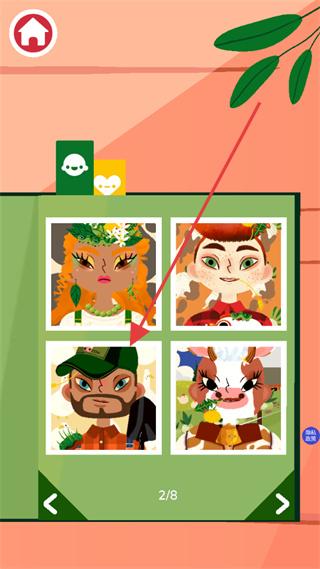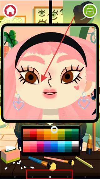 2、化妝場景中,用下方調(diào)色盤選顏色,點(diǎn)擊臉部區(qū)域(如眼部、臉頰)上色,打造獨(dú)特妝容風(fēng)格。