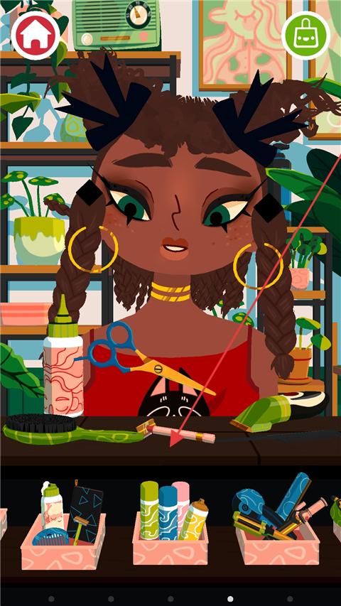 3、美發(fā)場景里,選工具(如剪刀、染發(fā)膏),對(duì)頭發(fā)部位(發(fā)梢、發(fā)根)操作,設(shè)計(jì)潮流發(fā)型。