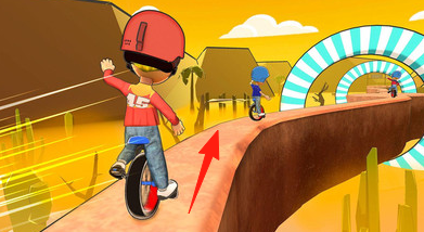 3、單車特技騎獨輪車單車,在沙漠地形過坡道、穿隧道,完成特技動作,提升技巧解鎖新關卡。