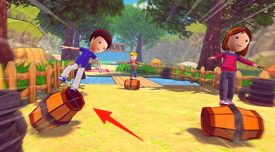 1、障礙挑戰(zhàn)控制卡通角色,在公園場景,通過木桶、輪胎等障礙,考驗平衡與跳躍,適合低齡玩家探索。