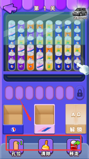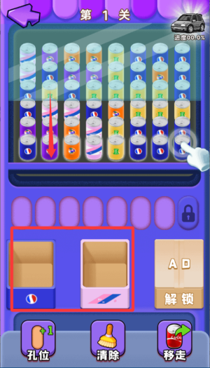 1、進入關(guān)卡后先觀察倉庫中飲料瓶的顏色分布,優(yōu)先整理數(shù)量較多的顏色。將相同顏色的瓶子按要求裝入紙盒,完成打包任務。