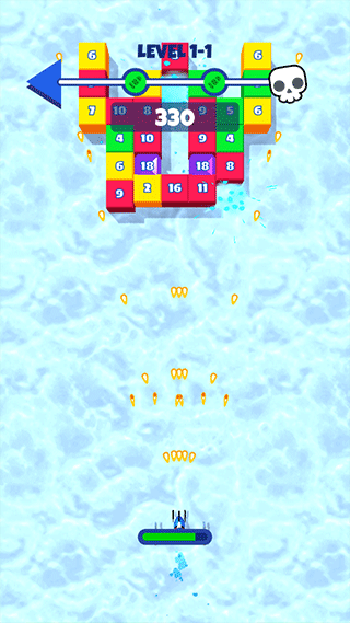 2、每個冰塊上的數(shù)字隨擊中次數(shù)遞減,完整破碎后產(chǎn)生金幣與道具掉落,及時撿取將幫助提升射擊與生存能力。