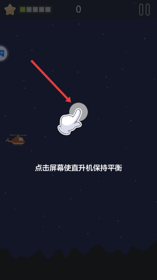 2、保持平衡:點(diǎn)擊屏幕,讓直升機(jī)(飛行炮臺(tái))維持飛行,躲避障礙。