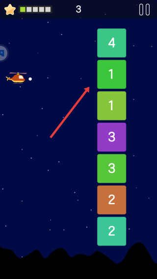 3、挑戰(zhàn)關(guān)卡:飛越數(shù)字方塊(如綠色“4”“1”等),按規(guī)則(如匹配數(shù)字)通過(guò),爭(zhēng)取高分。