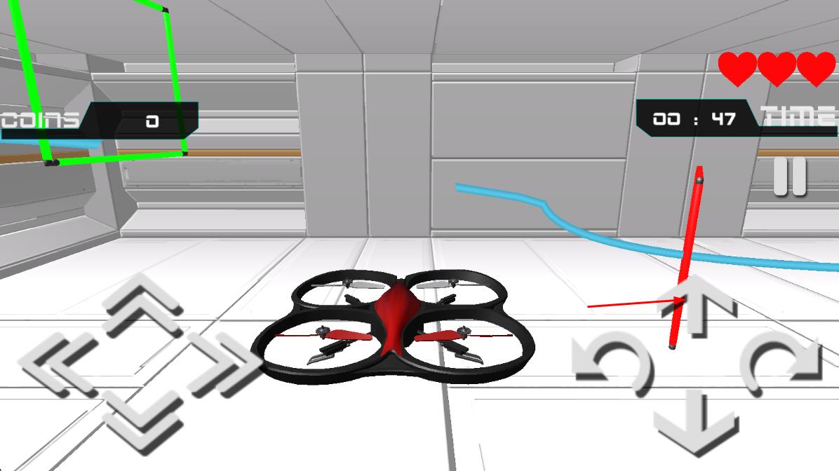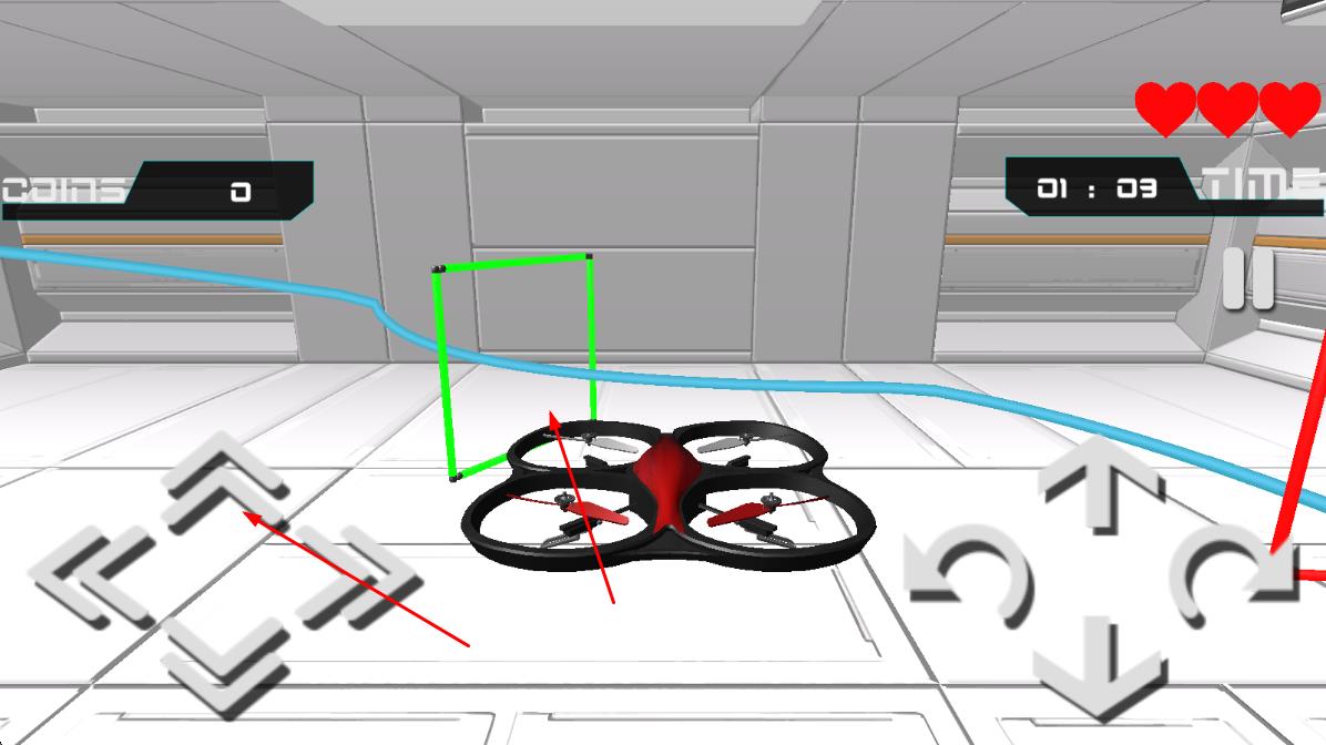 2、操控虛擬搖桿控制無人機(jī)升降與平移,根據(jù)關(guān)卡提示穿越指定障礙區(qū)域,躲避途中的激光與移動(dòng)障礙物。