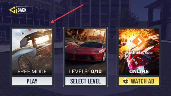 2、想挑戰(zhàn)選“LEVELS”,按指引完成賽道任務(wù)(計時、特技),贏獎勵解鎖新車。