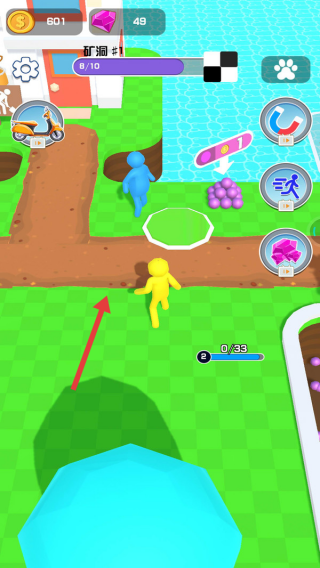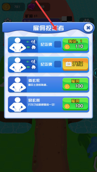 1、玩法機(jī)制操控黃色小人,在礦區(qū)挖掘、收集金幣,通過雇傭挖掘者(紀(jì)念碑、春藝依等),升級(jí)礦工,提升挖掘效率,推進(jìn)礦洞進(jìn)度(8/10→3/10)。