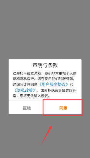 1、首次運(yùn)行需閱讀并確認(rèn)用戶協(xié)議,點(diǎn)擊同意按鈕后進(jìn)入游戲主界面。