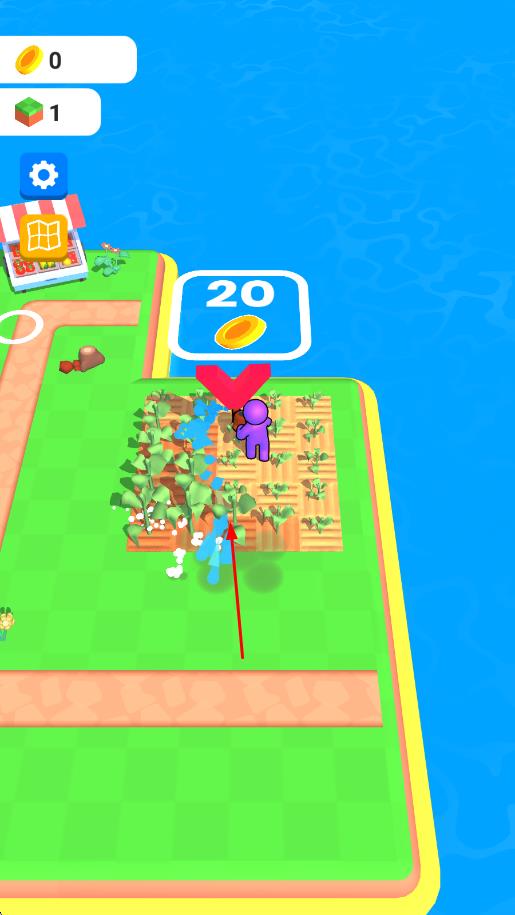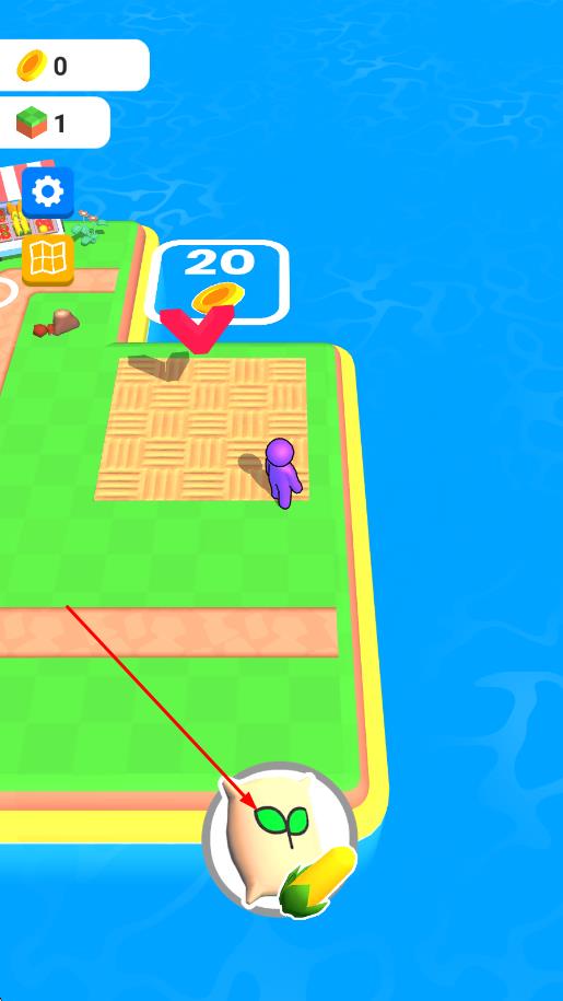 1、進入游戲后在初始地塊選擇小麥玉米等作物播種,點擊水壺工具完成澆水,等待作物成熟后點擊收割獲取初始資源。