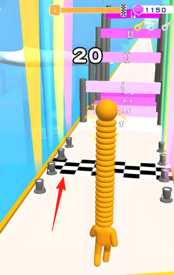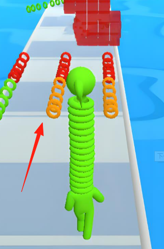 2、遇到彈簧道具列,精準(zhǔn)觸碰【橙色彈簧環(huán)】,增加自身彈簧數(shù)量,助力后續(xù)闖關(guān)。