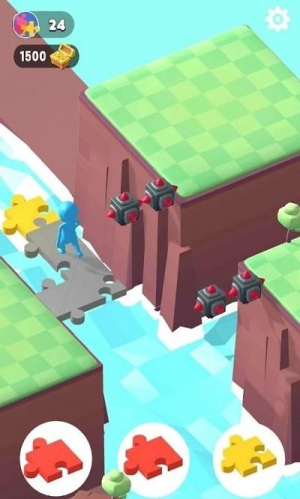 2、游戲創(chuàng)新性地將拼圖元素與過(guò)河挑戰(zhàn)結(jié)合,玩家需要開動(dòng)腦筋,用拼圖搭建橋梁幫助小藍(lán)人順利過(guò)河。