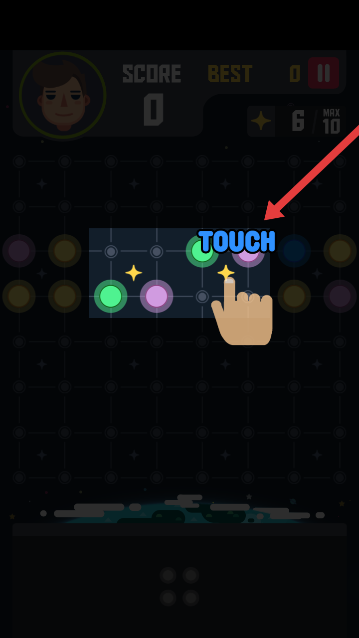3、需要留意屏幕的系統(tǒng)提示,點擊標有【TOUCH】區(qū)域內的星星,收集彩色圓環(huán),推進關卡進度。
