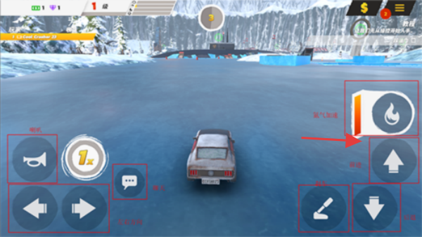 2、戰(zhàn)場(chǎng)操控:借虛擬按鍵控車,點(diǎn)擊“氮?dú)饧铀佟倍虝r(shí)提速,在雪地、沙漠等場(chǎng)景碰撞對(duì)手、收集道具。