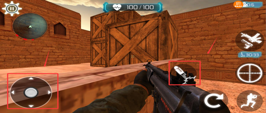 3、左邊是方向操作移動按鈕,右邊的子彈按鈕是射擊的操作。
