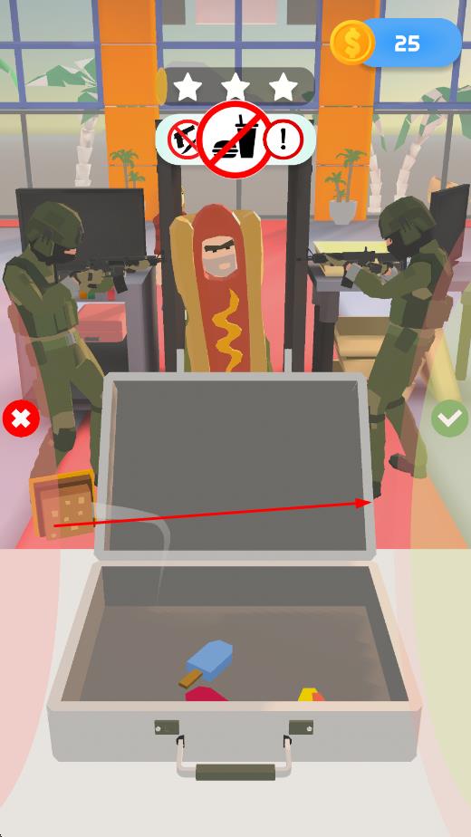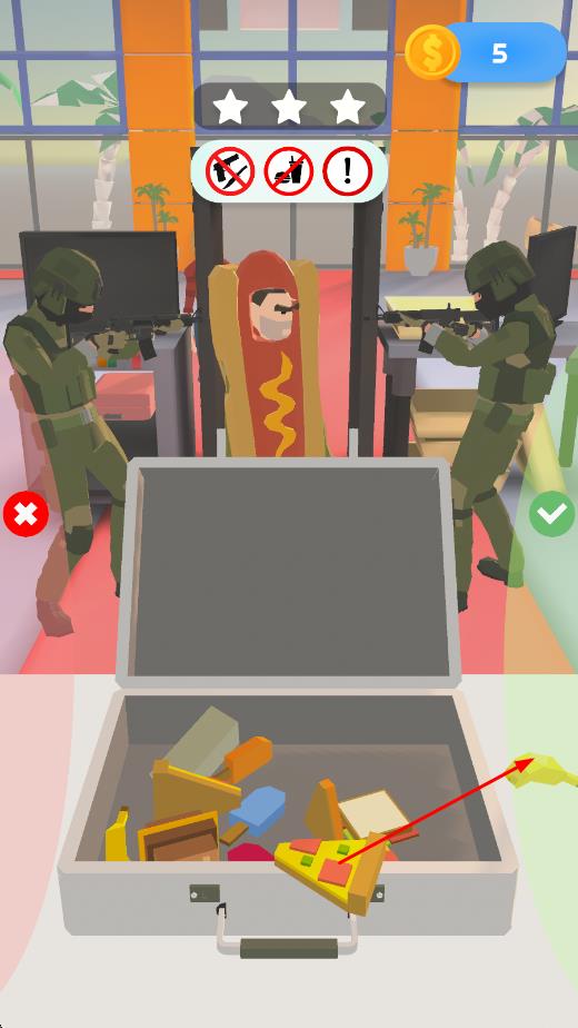 3、正確識別違禁品可獲得積分獎勵,累積積分解鎖更高級的安檢設(shè)備與國際航班安檢場景。