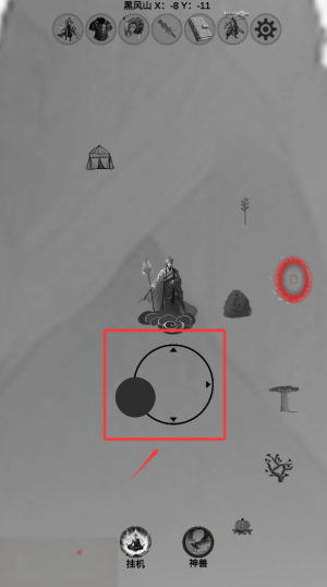 3、通過虛擬搖桿操控角色在仙山云海中漫步。