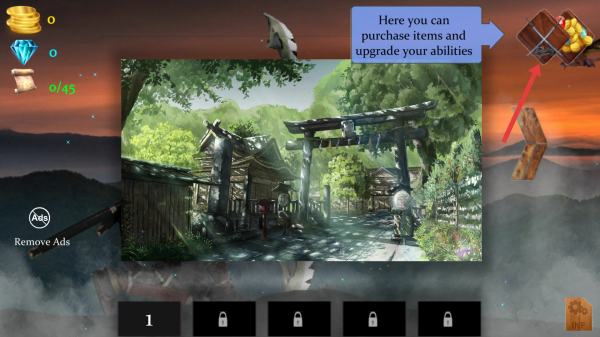 2、主界面點擊右側(cè)帶箭頭區(qū)域,進(jìn)入商店界面,可花費(fèi)金幣、鉆石購買道具,提升角色能力。