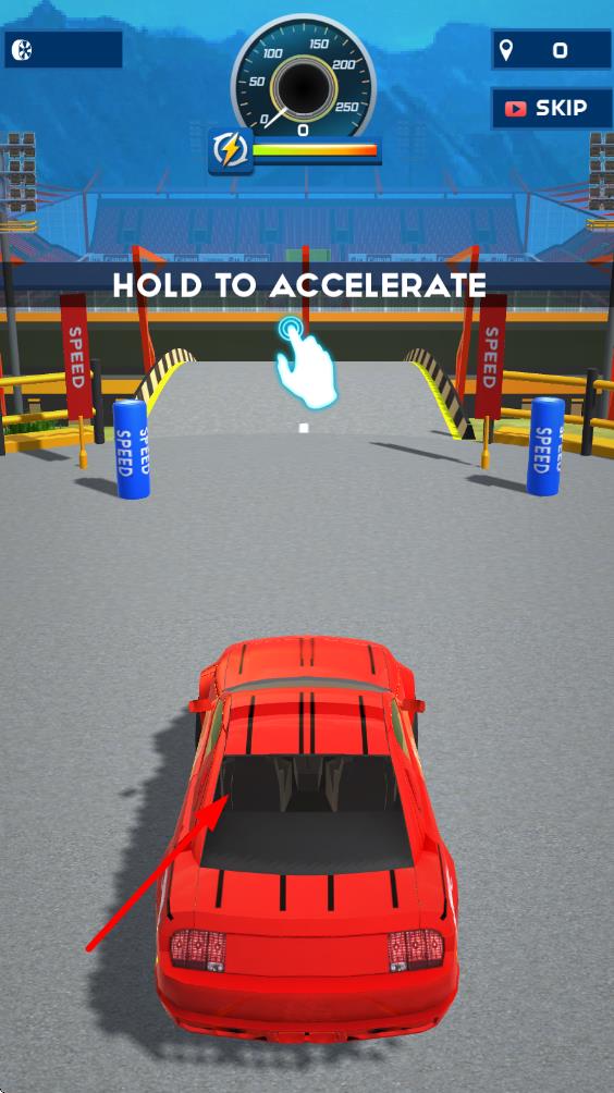 2、踏上賽道后,緊盯任務(wù)提示,通過傾斜屏幕或點擊按鈕控制賽車,在斜坡處精準(zhǔn)加速,完成空翻、漂移等指定特技。