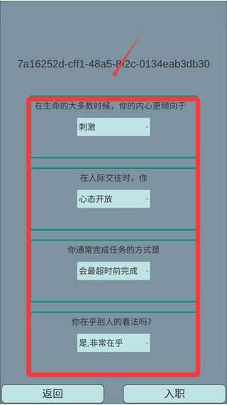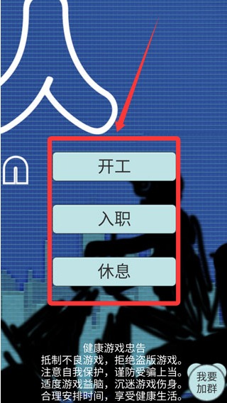 1、進(jìn)入游戲后點(diǎn)擊屏幕中任意一個(gè)按鍵開(kāi)始游戲,新手建議點(diǎn)擊入職。